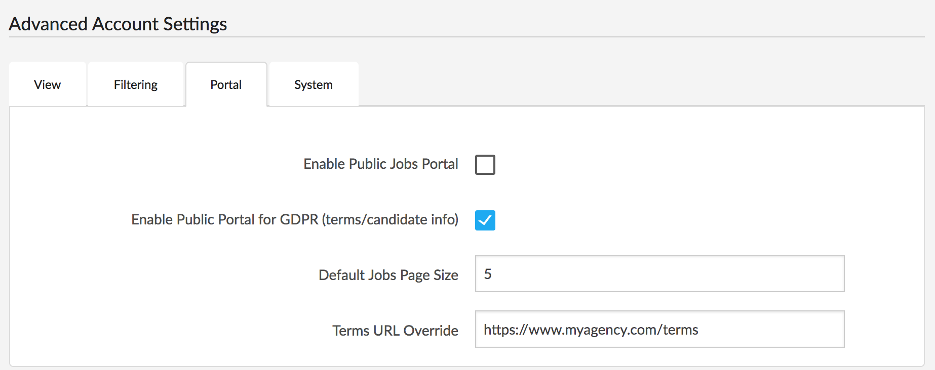 Note: to access this functionality you need to have either the public jobs portal or GDPR portal active.