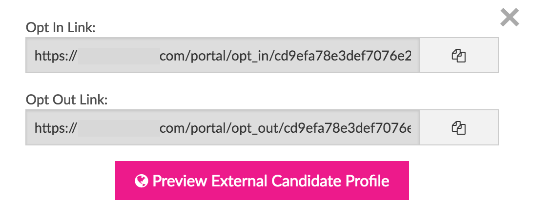 The link icon to the right opens up a window with the opt-in/out links (as well as the link for giving a candidate access to their data):