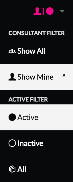 Show Mine – only show records owned by the currently logged in consultant. This is a dropdown and allows you to show records owned by any other consultant in the system