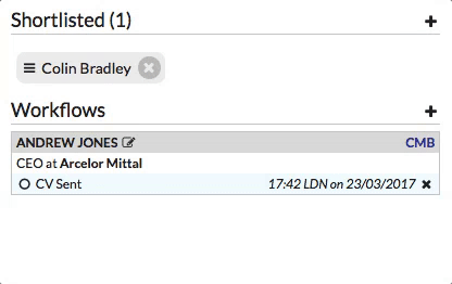 Similar to the candidate profile, if you are viewing a role and have previously shortlisted a candidate, you can drag and drop the shortlist item into the workflow section: