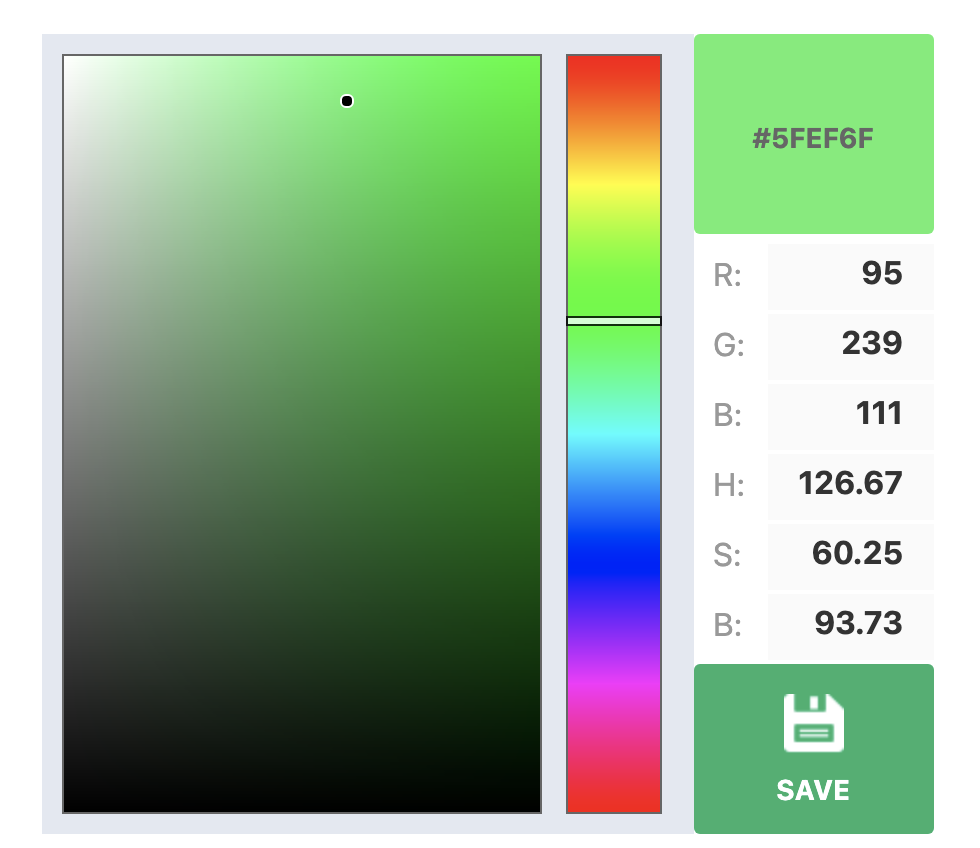 The full hex code here is #5FEF6F.