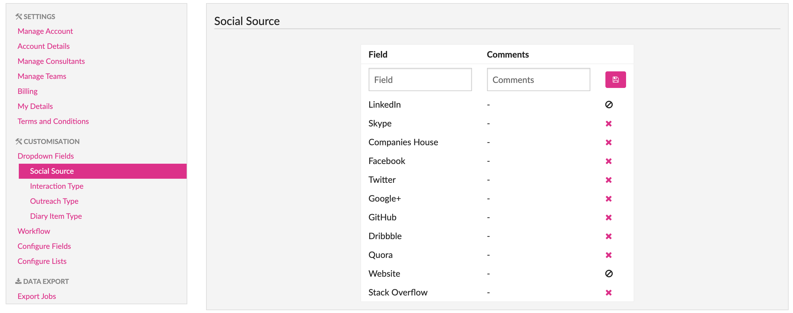 Social Sources represent the types of Social Media Profiles that can be attached to a Candidate profile.